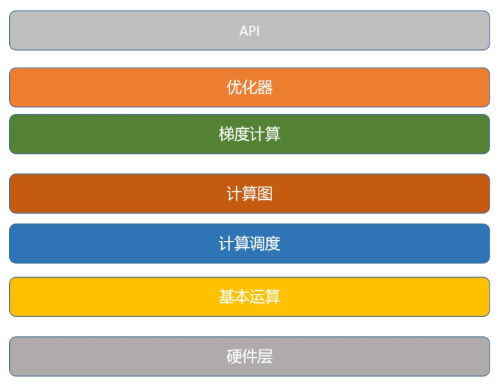 自动微分技术在深度学习库中处于重要地位,是整个训练算法的核心组件之一。一个典型的深度学习库架构如下图所示。在这里忽略了网络通信,本地IO等模块。