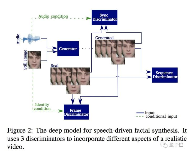在这项工作,研究人员借用这种时序生成对抗网络,使用两个时间鉴别器,对生成的视频进行视听对应,来生成逼真的面部动作。