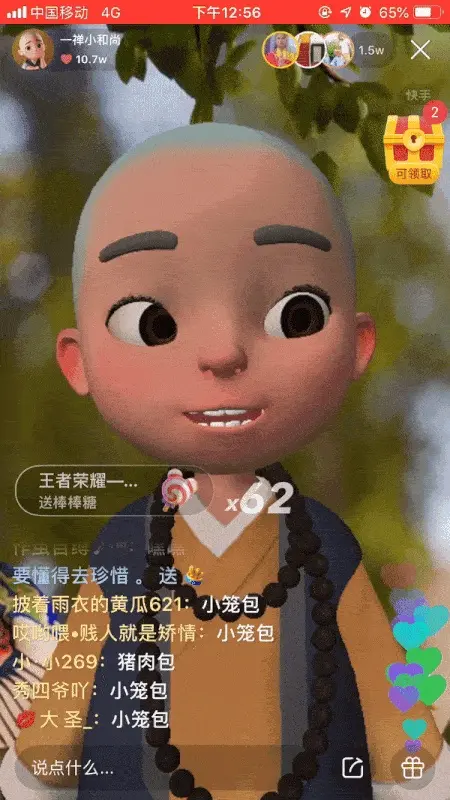 这一技术也早在两个月前使用在快手APP中,让多个知名短视频动漫IP形象开启直播,跟用户实时互动。一禅小和尚3D形象首次直播的49分钟时间里,就获得了64.9万个点赞,观看人数超过25万人,不少用户都被暖心的一禅小和尚治愈。