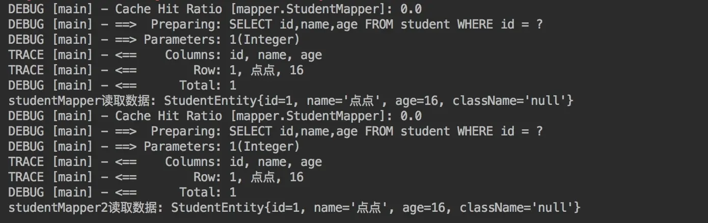 System.out.println("studentMapper2读取数据: " + studentMapper2.getStudentById(1));