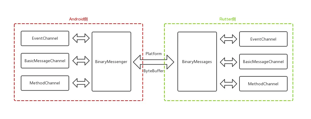 StandardMessageCodec的封装。是MethodChannel与EventChannel的默认编解码器。 - StringCodec:是用于字符串与二进制数据之间的编解码,其编码格式为UTF-8。在编码时会将String转成byte数组,然后再将该数组写入到