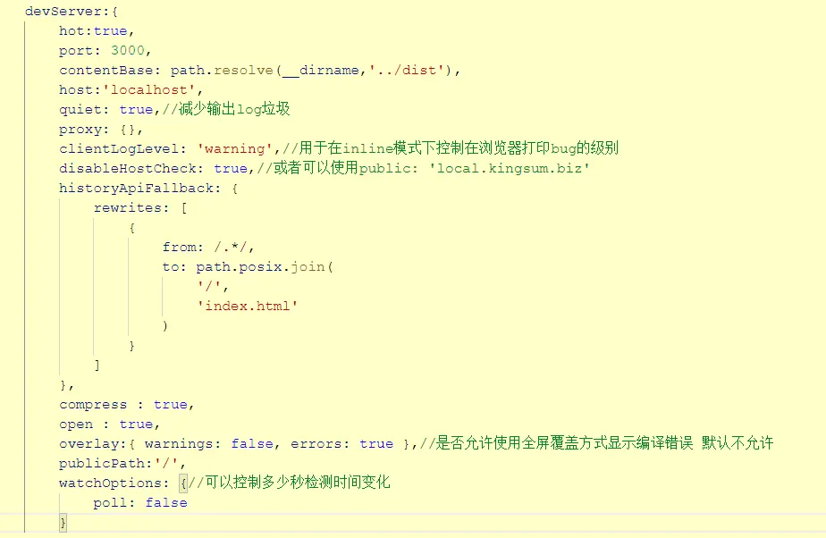 npm install webpack-dev-server -D- 修改配置文件 这个配置比较多上面是devserver配置下边是plugin我会在结尾附上我的github源码地址