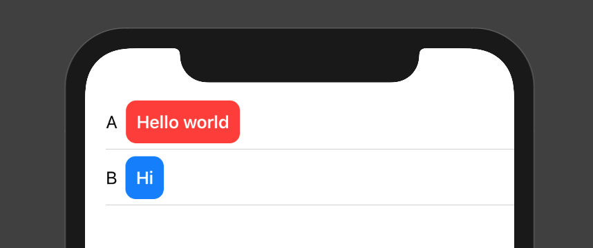 List { ForEach(messages.identified(by: .self)) { Text($0.avatar) Text($0.message) .bold() .foregroundColor(Color.white) .padding(10) .background($0.color, cornerRadius: 10) } }