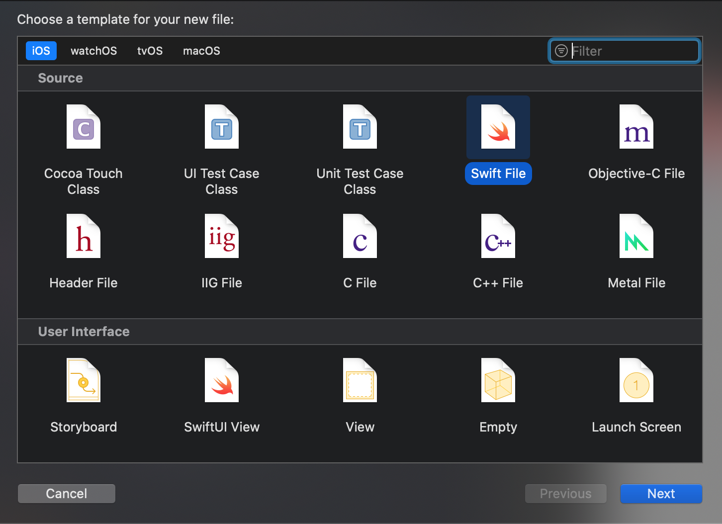首先,让我们创建一个没有SwiftUI支持的标准Swift文件: