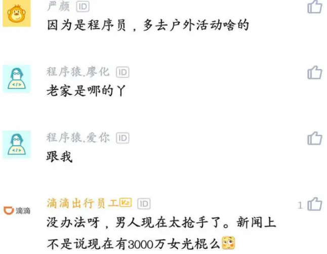 说实话,如果是听到男生程序员没机会认识女生的话,相信人人都能够接受,但如今听到女程序员抱怨接触不到男生,这就有点让人有点匪夷所思了,甚至有网友非常不理解的表示到:这简直是在开国际玩笑。虽说如今男生和女生都存在着单身的问题,但男生的单身和女生的单身完全不同:女生的单身大多数是想要找到更好的那个,亦或者在恋爱过几个之后,还想再挑一挑;而男生的单身,或许只有一个原因:要么丑,要么穷。