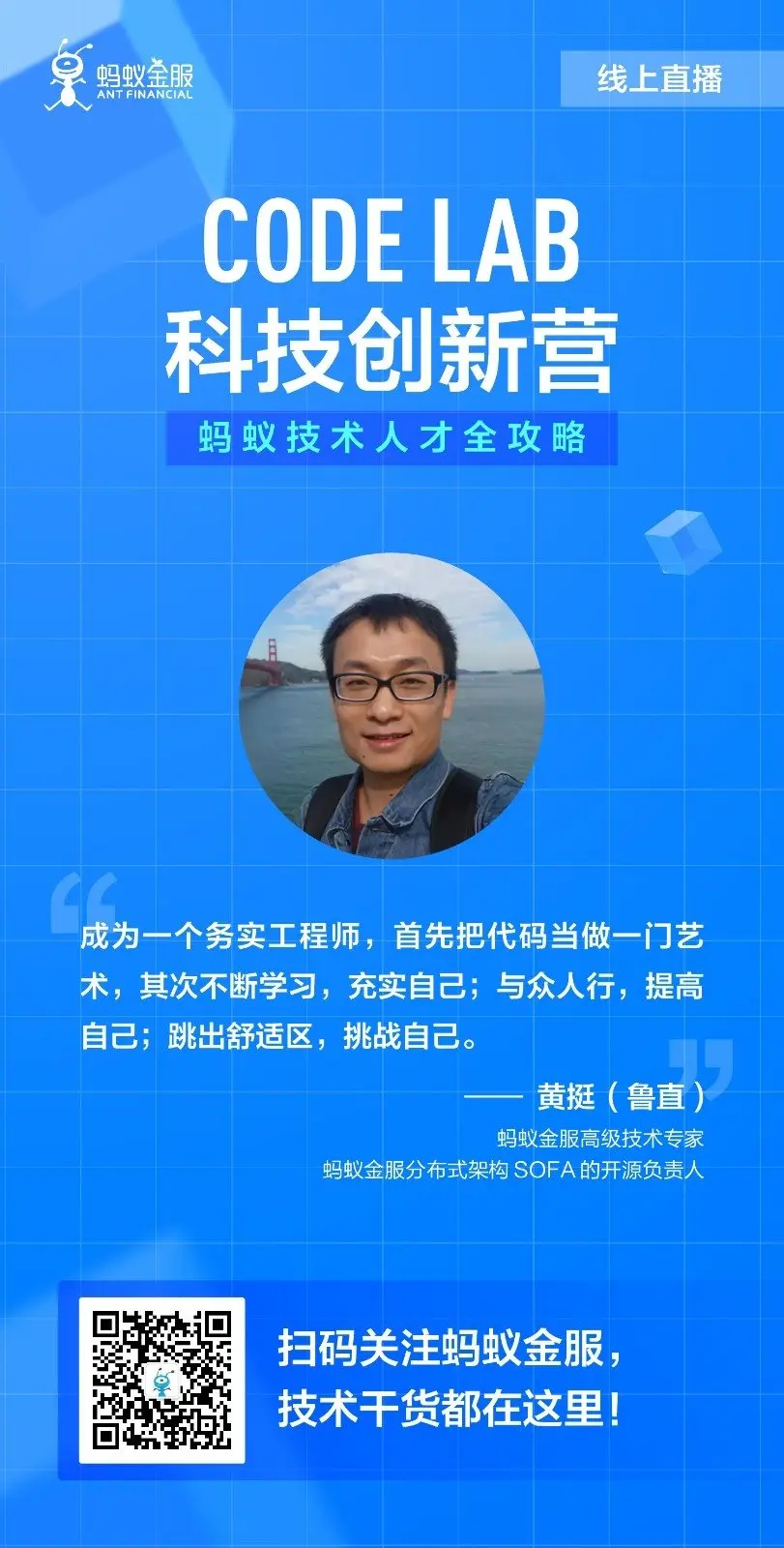 “蚂蚁技术人才全攻略”直播是支付宝 BASIC College 的 CodeLab 科技创新营首次开展的线上课堂。据了解,CodeLab 科技创新营于 2019 年 4 月正式启动,以 3 天集中课程的形式向学生输出蚂蚁技术与能力,而此次首次结合线上直播,也是希望同学们在学习新技术知识的同时,能够了解支付宝对人才的要求标准和人才培养体系。