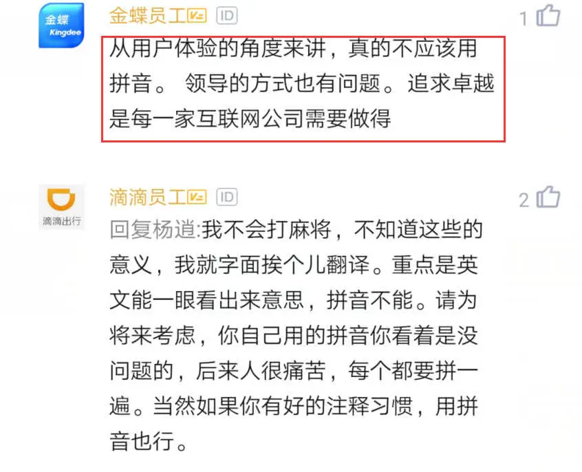 还有网友说从用户体验的角度来说,真的不应该用拼音啊,要知道任何一个产品,如果用户体验不好,可以说产品就是失败的。