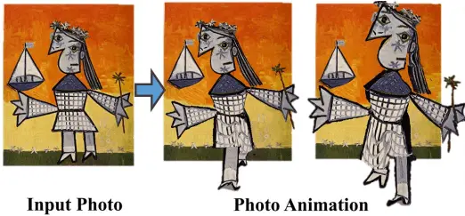 就像过去各种3D幻觉图像的演变一样,Wake-Up算法的编辑照片中的目标角色将从背景“浮动”并从原始背景中以3D形式行走,跑步,坐下或跳跃。角色原本存在的地方不会是镂空的轮廓,系统会自动用图片元素填充空白区域。
