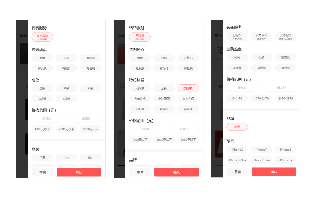 如上图在官方自营的tab下面,转转服务是不允许取消勾选的
