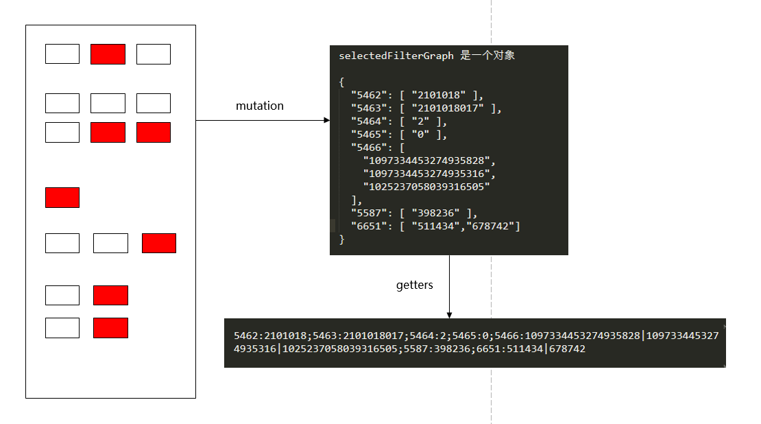 - 每一个筛选项都是独一无二的,拥有一份key value