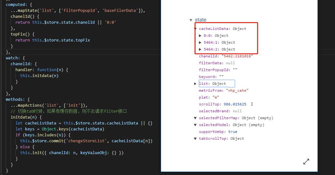5 顶部tab切换,可缓存不同渠道的筛选条件,以及在此条件下的请求数据