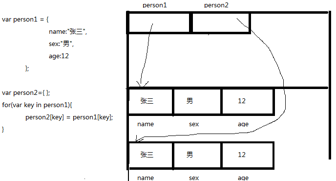 person2.name="张四"; //这句话会改变person1和person2的name。说明person1和person2的name占用的是同一块内存。