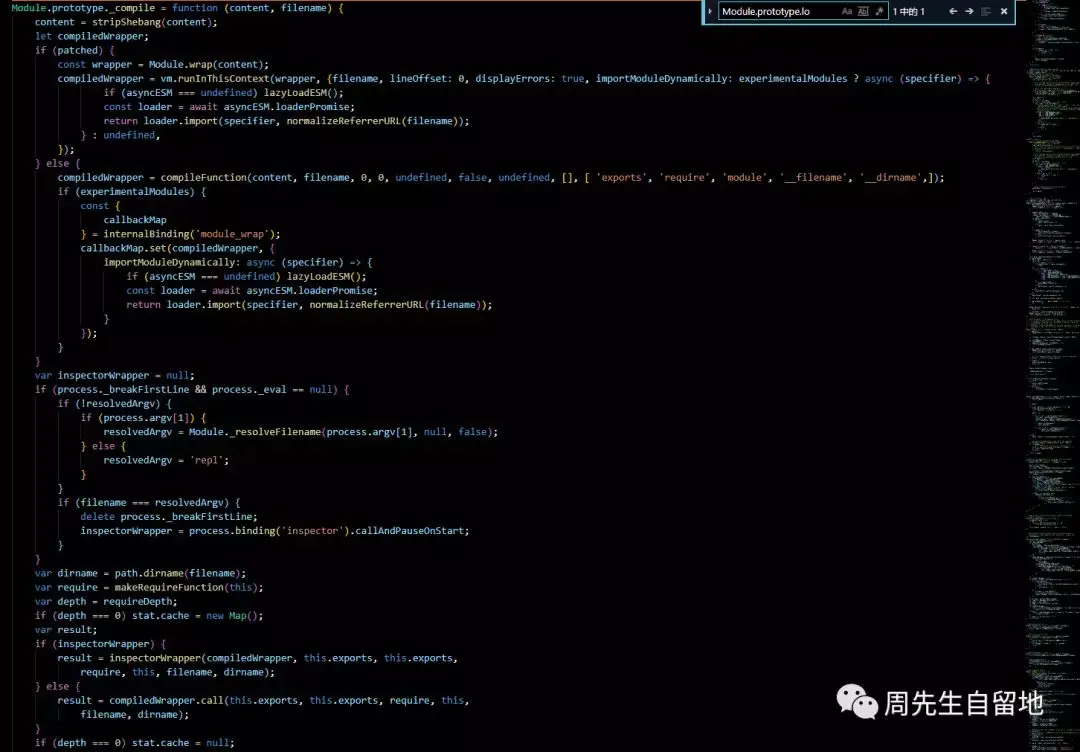 最后需要编译模块,用到了Module.prototype._compile()方法: