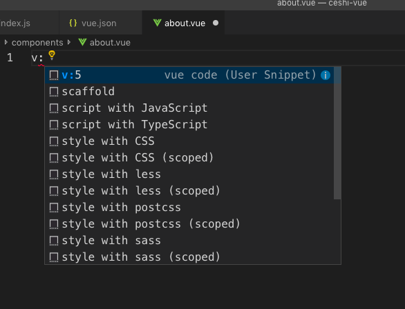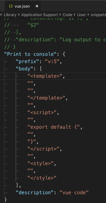 在vs code中可自定义这样的配置,command + shift + p 打开命令版,输入 Preferences: Configure User Snippets