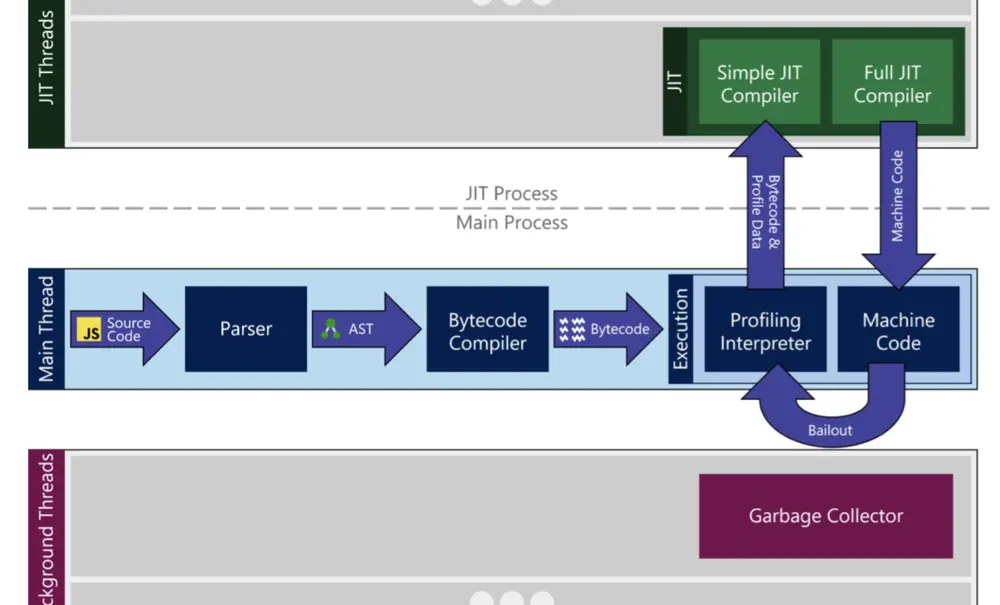这是Microsoft Edge浏览器的JavaScript引擎ChakraCore的结构。我们来看一看我们的JavaScript代码在引擎中会经历什么。