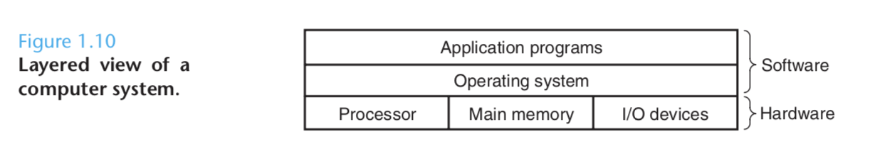 操作系统就是一个软件层,铺设在硬件和应用层中间,all attempts by an application program to manipulate the hardware must go through the operating system.