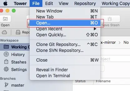 tower中每个tab可以打开一个项目,打开多个项目可以使用多个tab,可以使用File -> New Tab命令打开新的tab