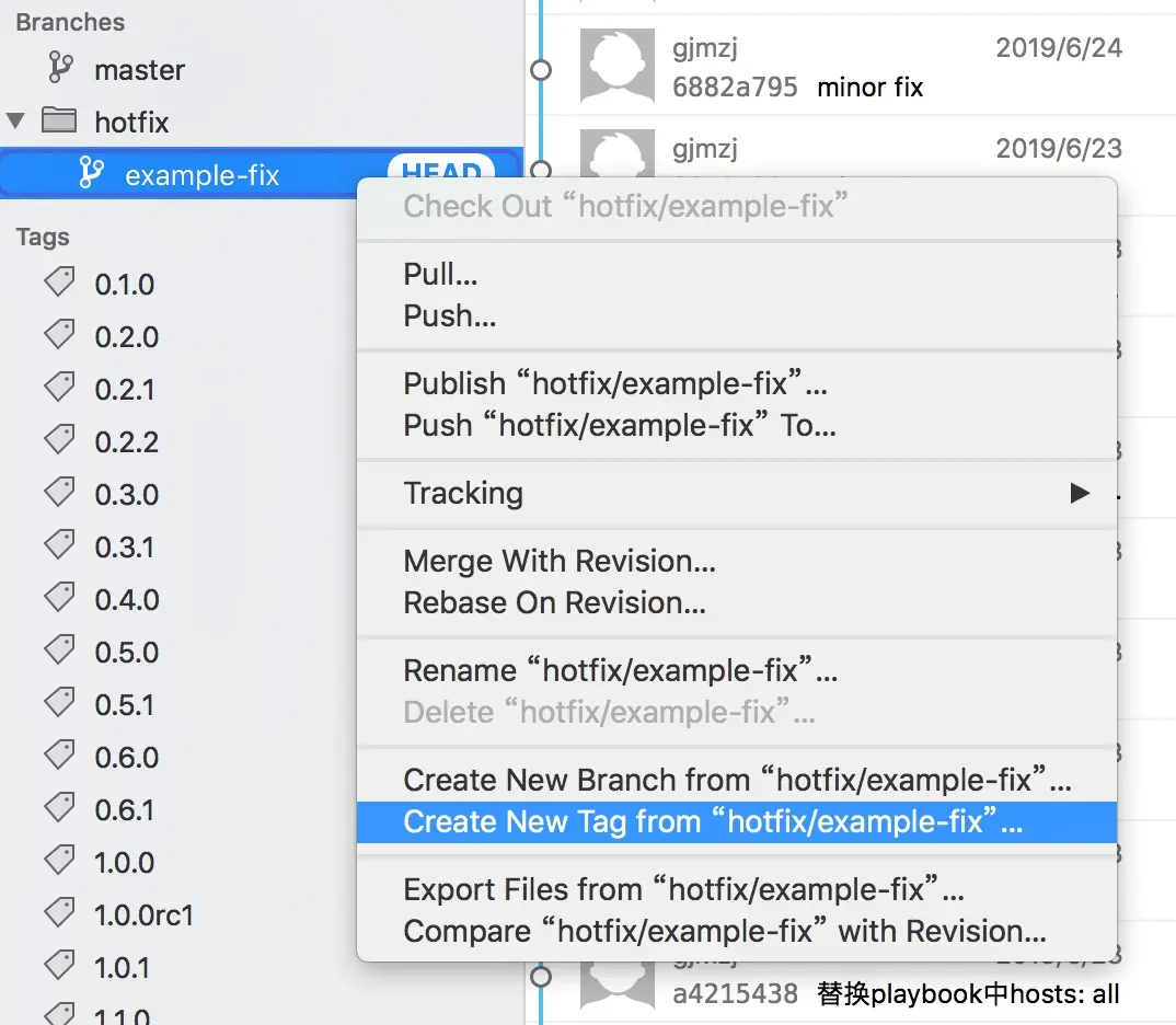 分支上点击右键,选择Create New Tag from ”branch“就可以从分支上创建tag了