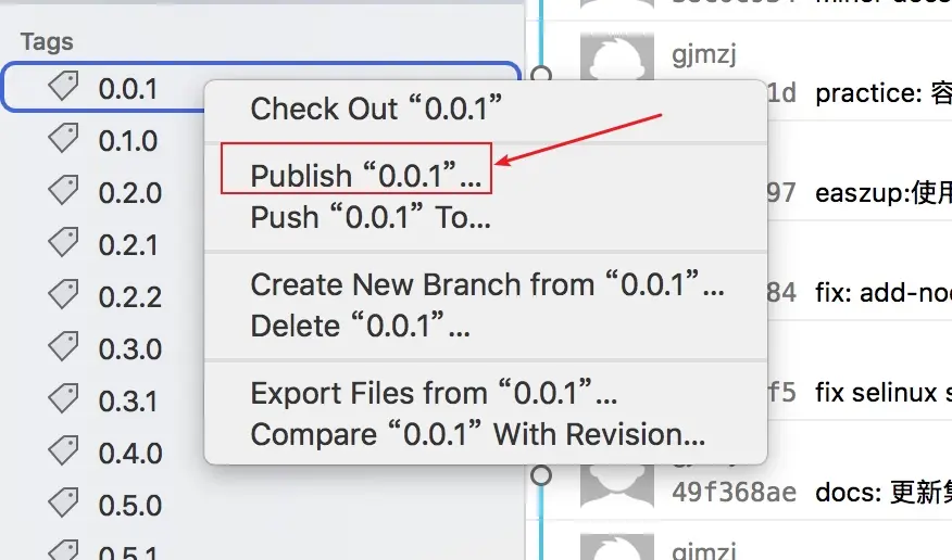 比如创建一个0.0.1的tag