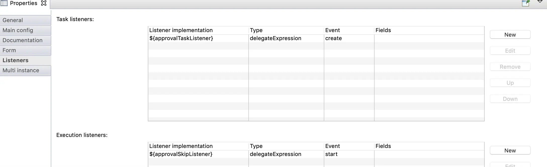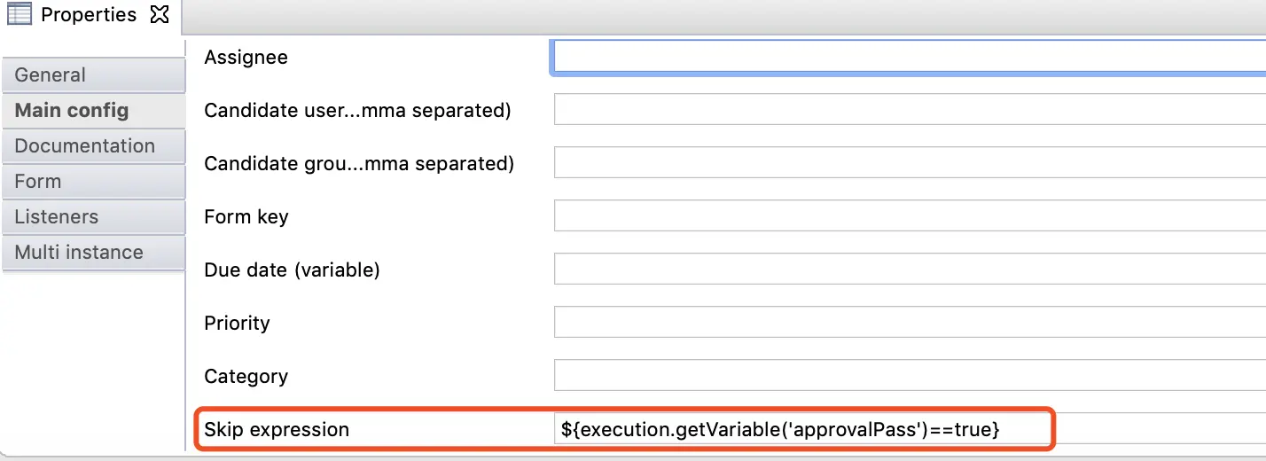 在审批usertask外层设置exection的监听器approvalSkipListener,前面说过exection是先于usertask执行的,每个usertask外层都有一个exection,所以这个监听器可以控制usertask的行为。