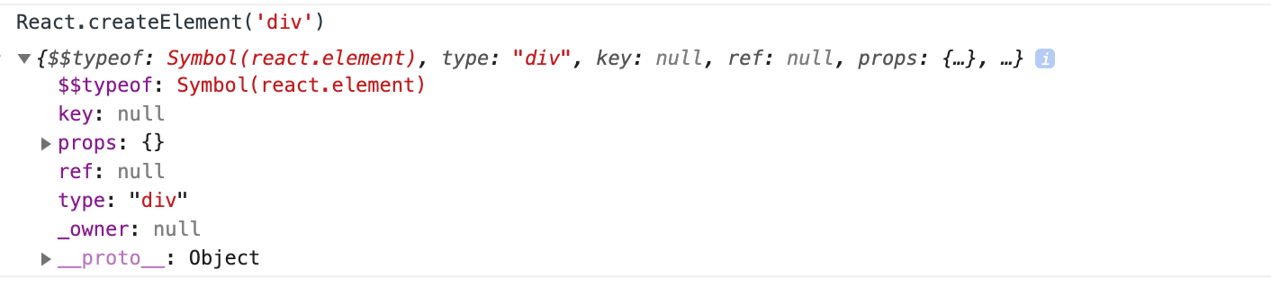 通过 React.createElement 方法创建的对象,都含有一个值完全相同的 ?typeof 属性,标识其为一个 React 元素。