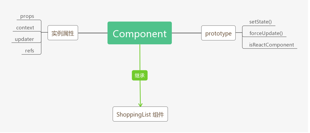 当 ShoppingList 组件进行实例化的时候它自然也会带有上图中的所有实例属性和原型方法。