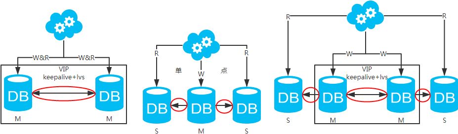4、扩展性分析:当然可以扩展成三主循环,但笔者不建议(会多一层数据同步,这样同步的时间会更长)。如果非得在数据库架构层面扩展的话,扩展为方案四。