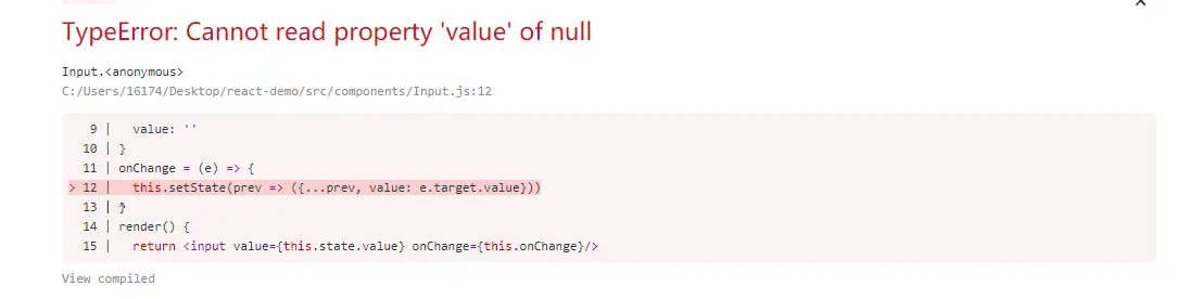 上面的代码看似没有问题,但是注意到setState传入了一个方法,而不是注释里面直接传值,于是你放心的操作,结果报错了