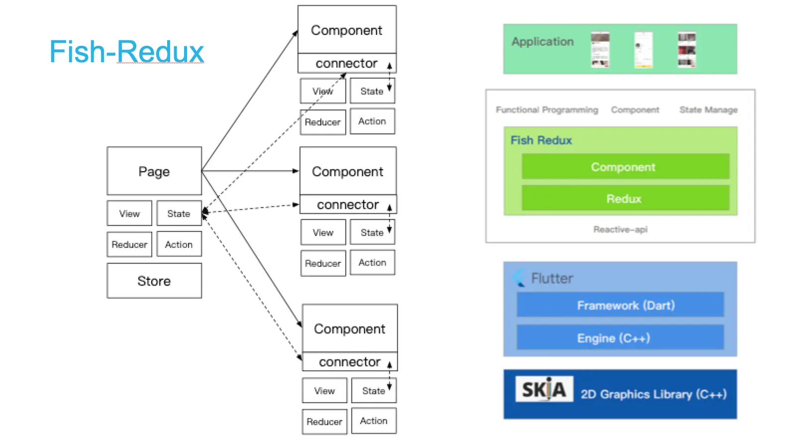- 为全面推动Flutter在业务场景下的落地,闲鱼团队通过多次迭代演进出Fish Redux框架,保证了每位同学可以快速写出相对优秀的Flutter代码。