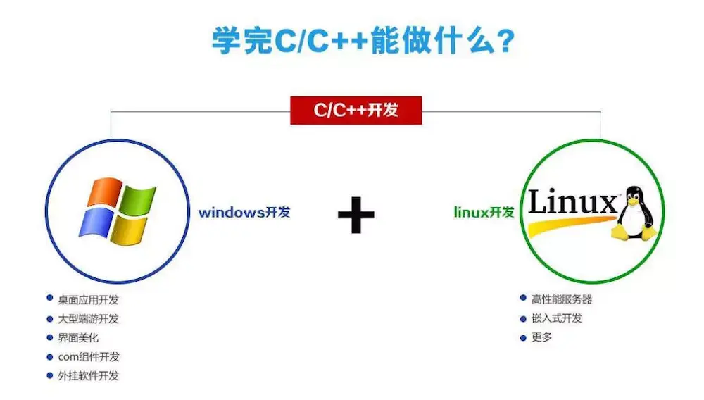 C++:网络游戏开发、音视频技术、Socket网络通信,另外,苹果/谷歌/微软 等大型软硬件公司的系统或者软件上面都支持C/C++语言的集成开发。