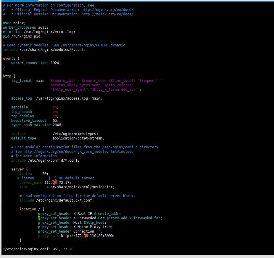 server_name xxx.xx.xx.xx; //你的公网IP地址,或者是域名