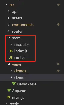 (1) src/store/index.js将store下的modules模块和root模块合并管理并导出