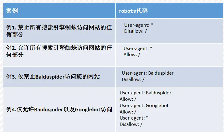 robots.txt文件主要是限制整个站点或者目录的蜘蛛访问情况,而robots meta标签则主要是针对某个具体的页面
