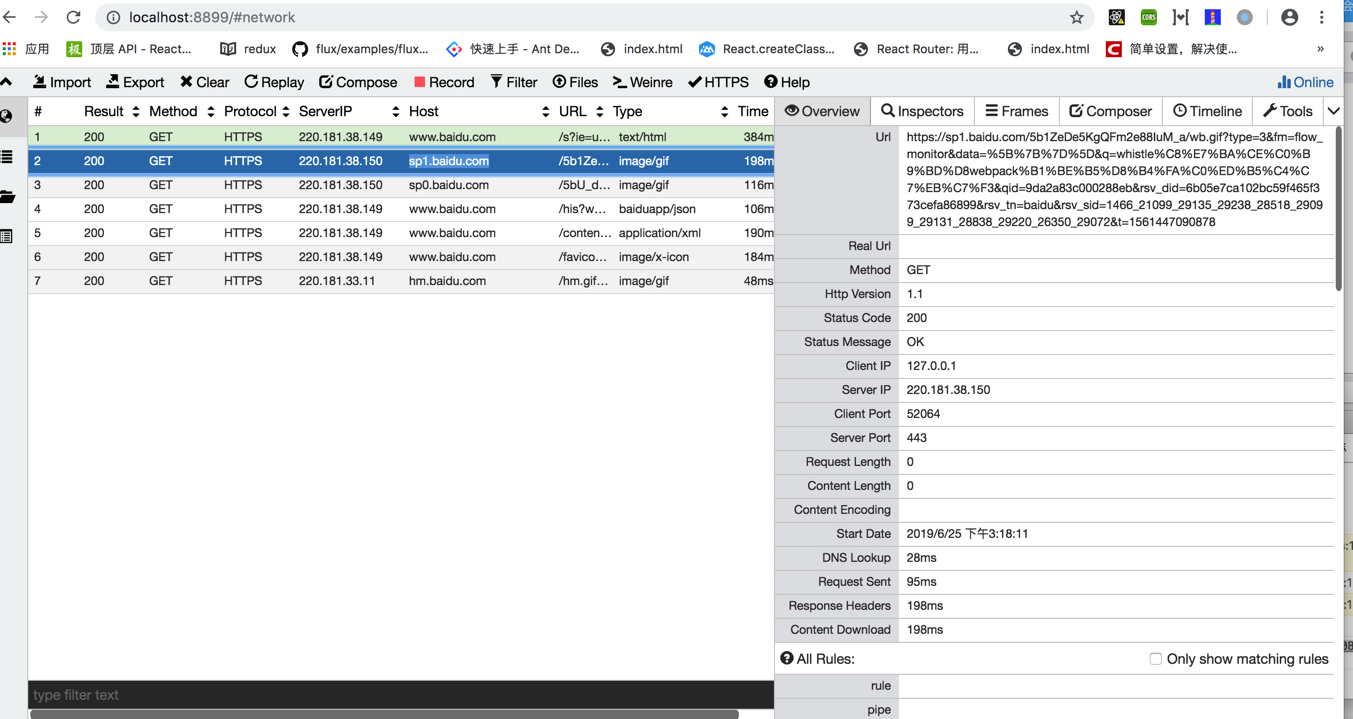 whistle中查看请求的转发情况,可以看到有些请求已经的确转发到了本地3002端口