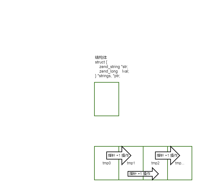 - 其中,tmp 是循环中的单元值。每经历一次循环,会将单元值放入结构体中,随后进行指针 +1 运算,指针就指向存储下一个结构体数据的地址: