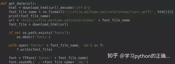 font_file_name = re.findall(r'//vfile.meituan.net/colorstone/(\w+\.woff)', html)[0]拿到了文件名之后就构建一下url