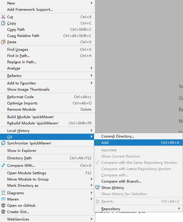 右击项目,先把项目提交到本地,即添加Git->Add,提交Git->Commit Directory。