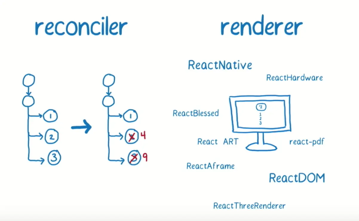 渲染阶段(Renderer):遍历更新队列,通过调用宿主环境的API,实际更新渲染对应元素。宿主环境,比如 DOM、Native、WebGL 等。