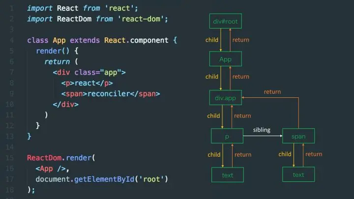 对照图来看,是不是可以知道 Fiber Node 是如何联系起来的呢,Fiber Tree 就是这样一个单链表。