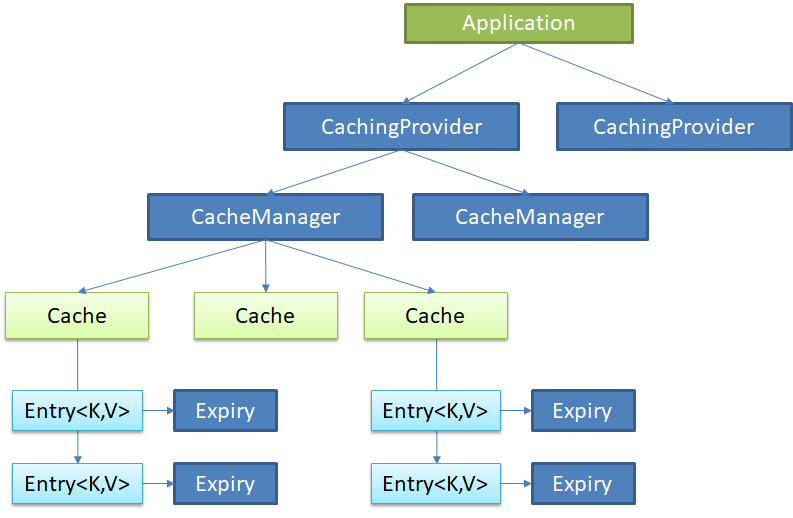 Java Caching定义了5个核心接口,分别是CachingProvider, CacheManager, Cache, Entry 和 Expiry。