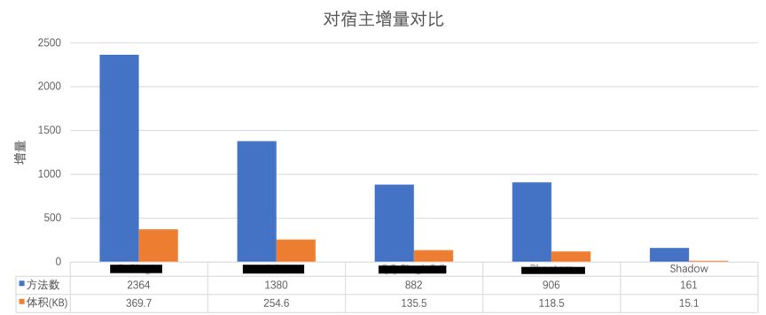 而我们已知的其他插件框架对宿主的增量一般在110KB,900个方法到370KB,2300个方法之间。