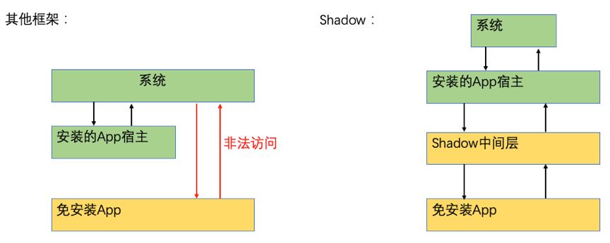 Shadow所指的插件是插件的代码完全是一个正常可安装的App代码,无需引用任何Shadow的库。这样的App代码应用了Shadow之后可以免安装运行在另一个App中。
