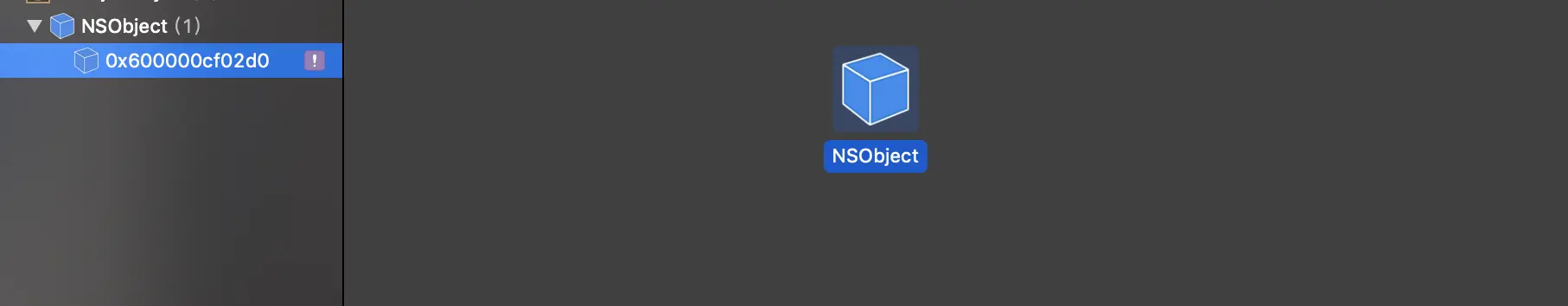 我们再看下使用performSelector调用new方法创建对象时的内存图:(可以看到方法执行完后,内存中仍然存在一个对象未被释放)