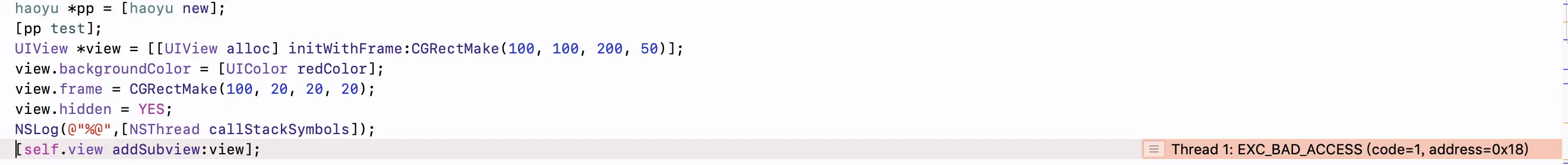 crash原因是:函数返回值被认为是一个对象,所以会在其不被使用的时候会调用objc_release()对其释放,而事实上返回值是一个结构体,因此crash。(暂且这么解释!)