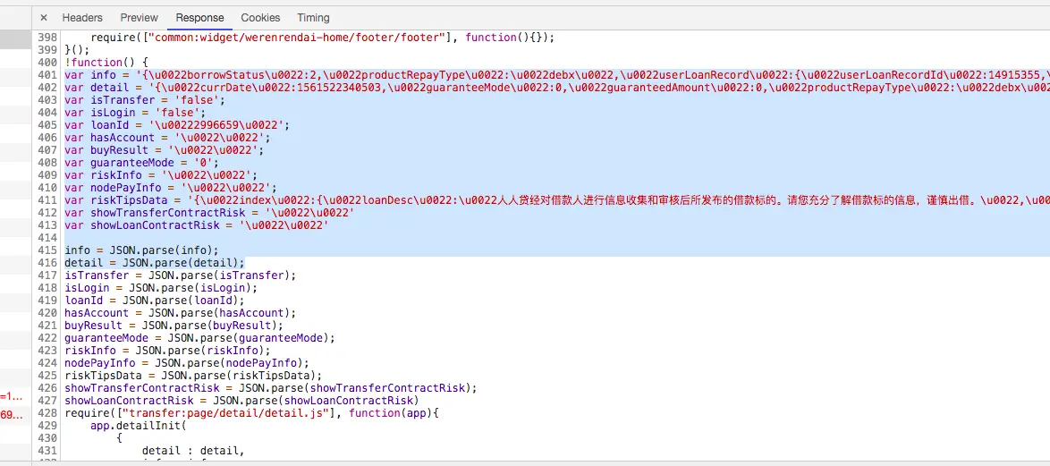 获取到json对象的info、detail后就开始解析,在此之前先分析一下直接下载的js解析文件