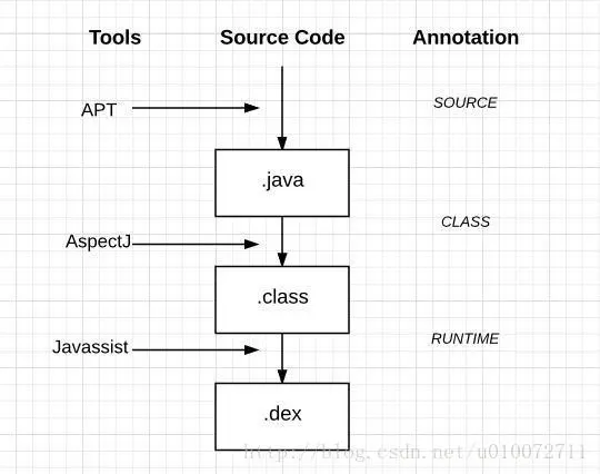 AspectJ:一个实现AOP的框架,核心是他的编译器(ajc)。就做了一件事,将 AspectJ 的代码在编译期插入到目标程序中。运行时没啥区别。