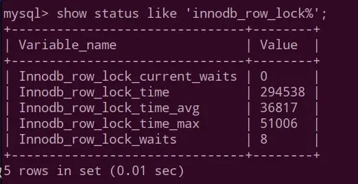 mysql>show status like 'innodb_row_lock%';