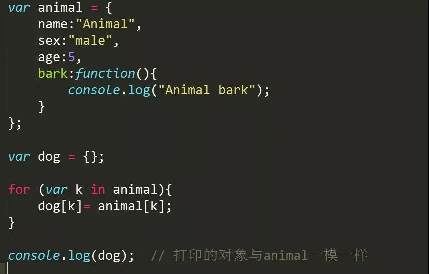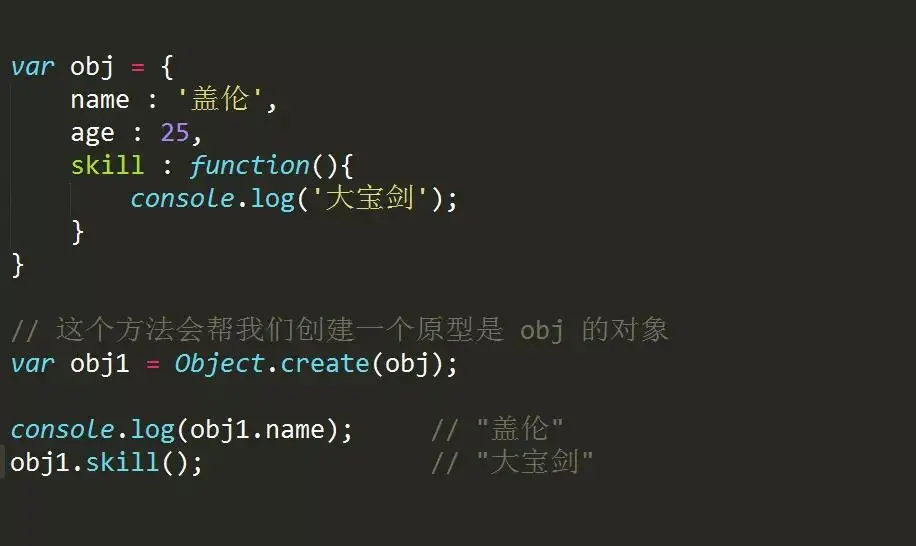 示例代码:让空对象obj1继承对象obj的属性和方法