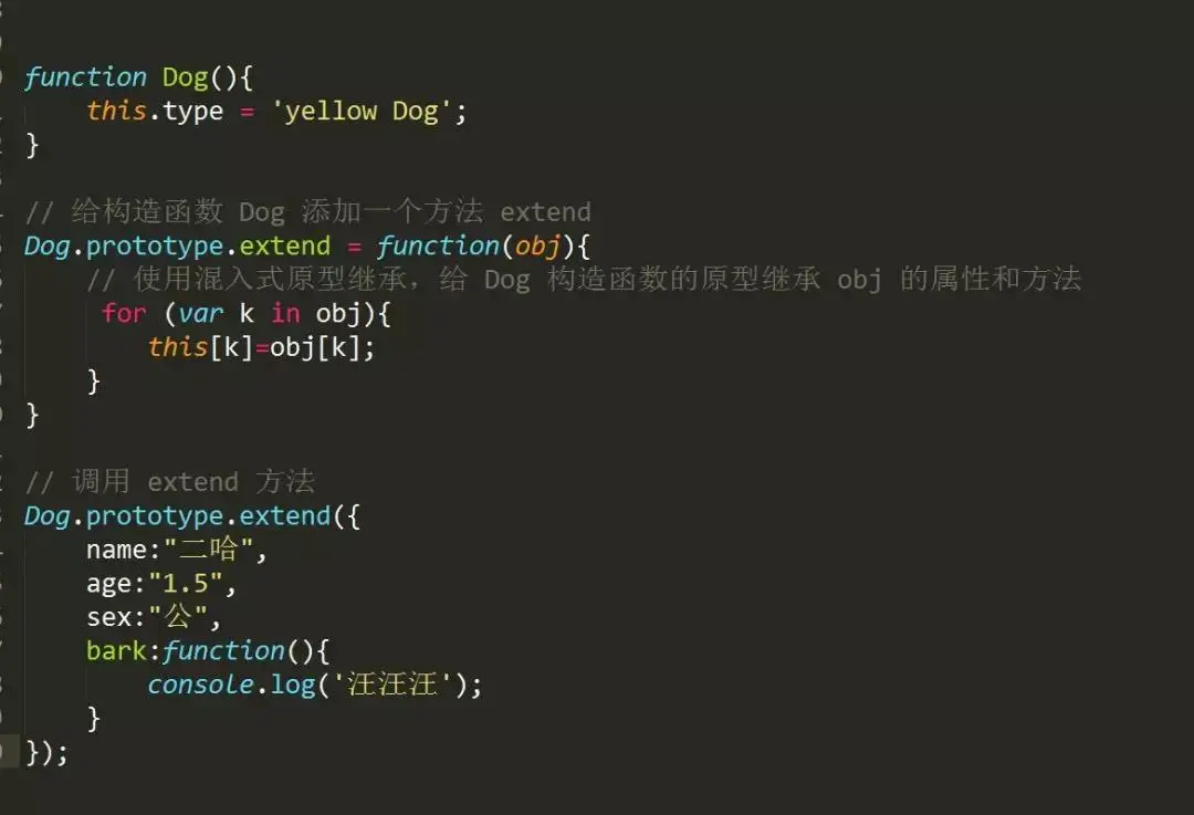 混入式原型继承其实与上面的方法类似,只不过是将遍历的对象添加到构造函数的原型上。