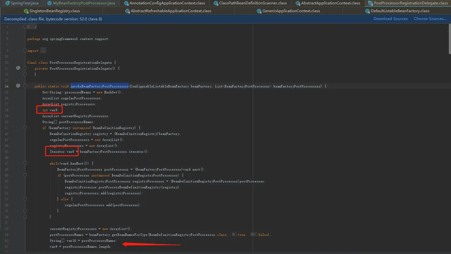 // 如果熟悉前面BeanFactoryPostProcessor的逻辑,这里一看就懂,跟前面很相似